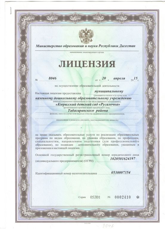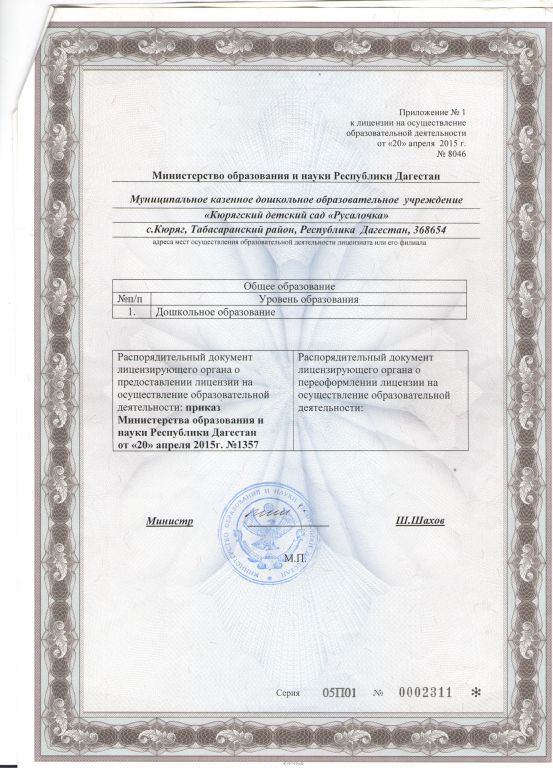 | Сокращенное наименование образовательной организации* | МКДОУ «Кюрягский д/с «Русалочка» |